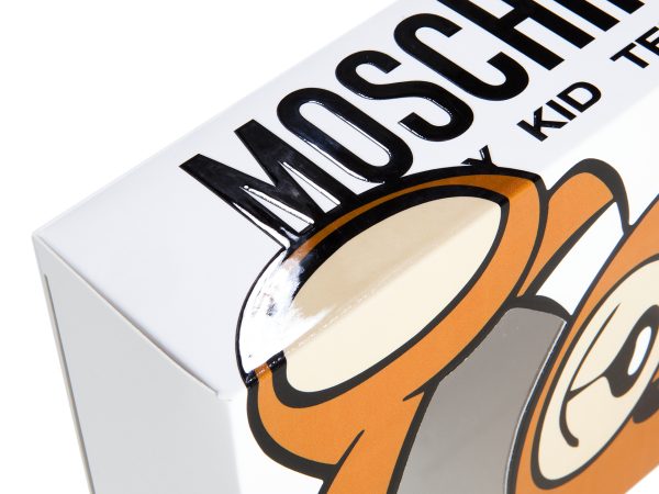 Box made from coated, matt-laminated rigid cardboard, with 4-colour offset printing plus gold Pantone. Snap-fit base for quick and secure assembly.